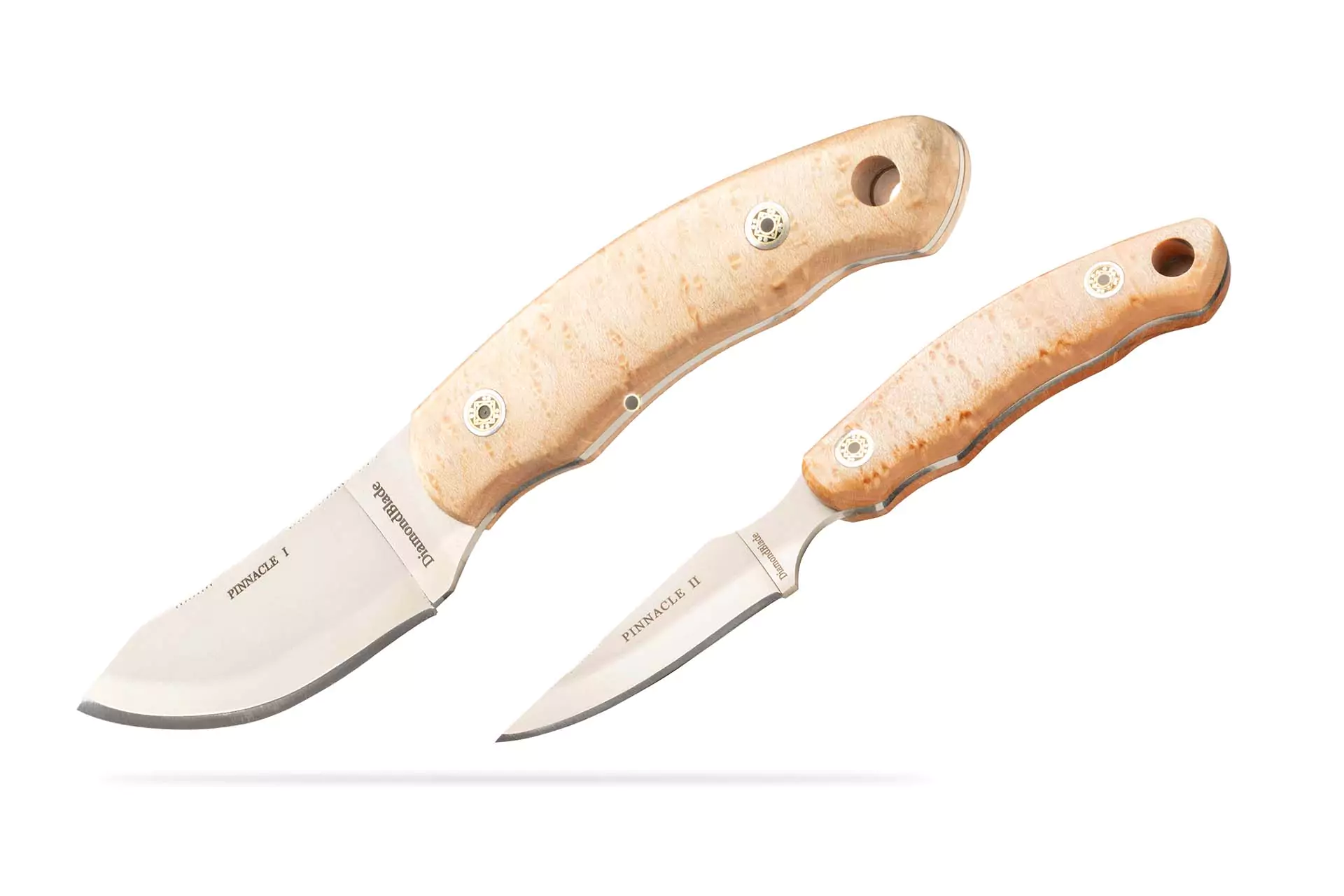 • Wood: If you are looking to elevate the look of a DiamondBlade knife, our stabilized wood handles are an excellent choice as they are complimented with mosaic pins that create a classic, very high-end look. They are made with heirloom quality materials and craftsmanship that are a joy to use in the field.